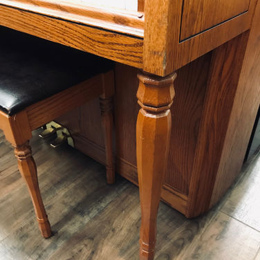 Here is a classic piano built by one of the most respected piano builders in the industry today. This console by Yamaha comes in a wonderful oak finish, with tasteful styling done around the legs and music rack. It has its original bench, which has a music compartment for easy access to one's music. Additionally, this piano has a lid prop on the inside, allowing the lid to be open while performing, directing the sound towards the performer's ears. As expected with a Yamaha, the tone on this instrument is bright, without sounding harsh, and the action has a nice medium weight. Included in the purchase of this piano is a complimentary move to your home, tuning, warranty, and our 10 year trade up policy. Come try it out today!